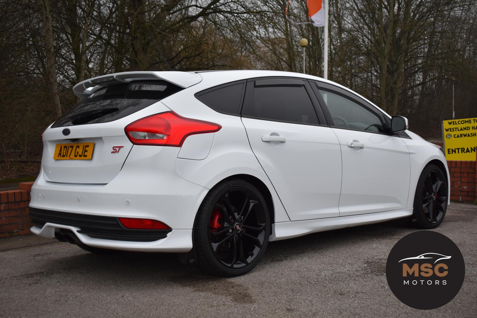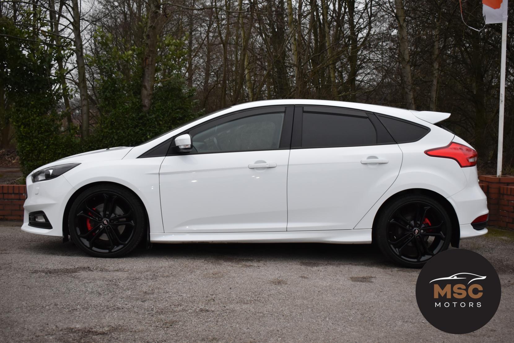 This Focus ST3 is in great condition for its age and mileage and it’s also a brilliant specification, it’s got the reverse camera along with rear parking sensors to help getting into those tight supermarket spaces and once you are parked you needn’t worry about people catching your wing mirrors as they will fold in electronically. It’s got the all important Black Style Pack giving it the 19” Black alloys and Black front grill. It’s got automatic headlights, cruise control which is ideal for longer motorway journeys and it’s got the very rare blind spot monitor which is a great safety feature. The heated steering wheel and heated seats will keep you nice and warm during the winter months whilst the quick clear heated front screen will clear the screen of ice in seconds. It’s got the Sync 3 navigation system which gives you built in Sat-Nav, DAB radio, Bluetooth for both audio and calls, USB connectivity and the all important Apple Car Play and Android Auto. The full leather Recaro seats wrap around you perfectly and these ST’s are incredibly fun cars to drive. It has both of its original keys with it, all of our retail cars come with a warranty which you can extend if you wish to, part exchanges are welcome and low rate finance with no deposit options are available. We can also supply and fit ghost immobilisers and Maxton body kits. If you have any questions at all then please don’t hesitate to contact us.